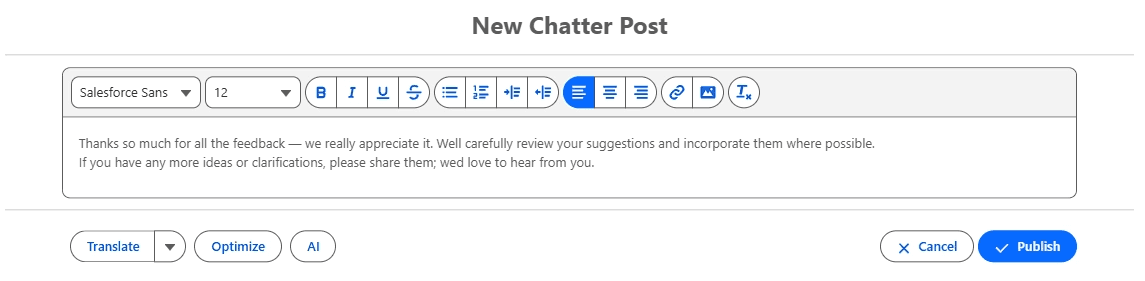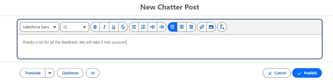 This transforms Chatter from a language-isolated tool into a truly multilingual collaboration hub where every team member can participate fully, regardless of language background.